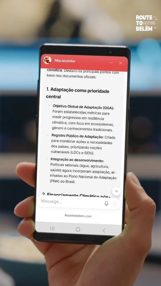 Our AI chatbot was named in honor of macaws (Ara macao) , birds that are among the symbols of Brazil. In an era of misinformation, it serves as a reliable source on global climate change, having been trained on official documents from UN climate agencies. Proficient in over 50 languages, it provides accurate data on topics related to negotiations at COP30 in Belém and previous COPs.