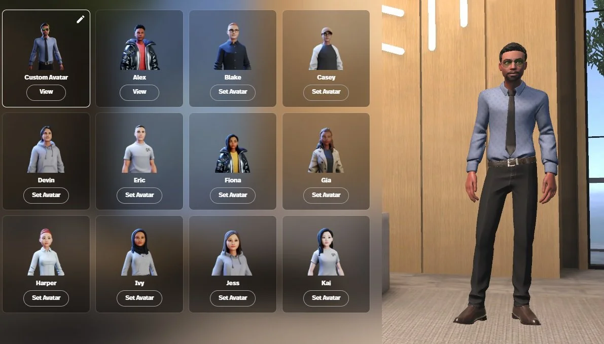 For pre-configured avatar, select a character from the pre-defined characters (cards).