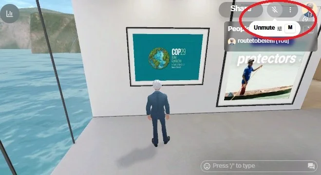 Using keyboard (e.g.: Maloca Amazônia): Walk to the visible “bubble!” circle (as shown in the video) and press the “F” key.